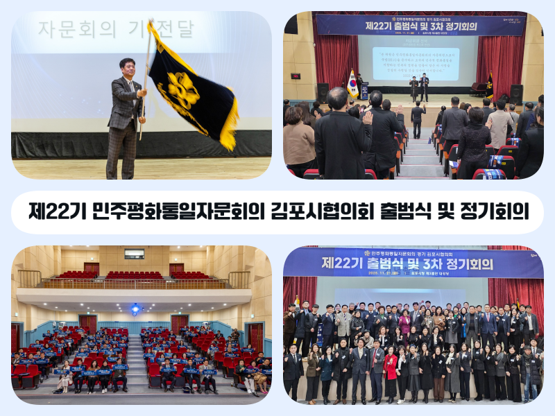 민주평화통일자문회의(이하 ‘민주평통’) 김포시협의회(회장 한종명)는 11월 21일 김포시청 제3별관 대강당에서 제22기 출범식 및 정기회의를 개최하였다.