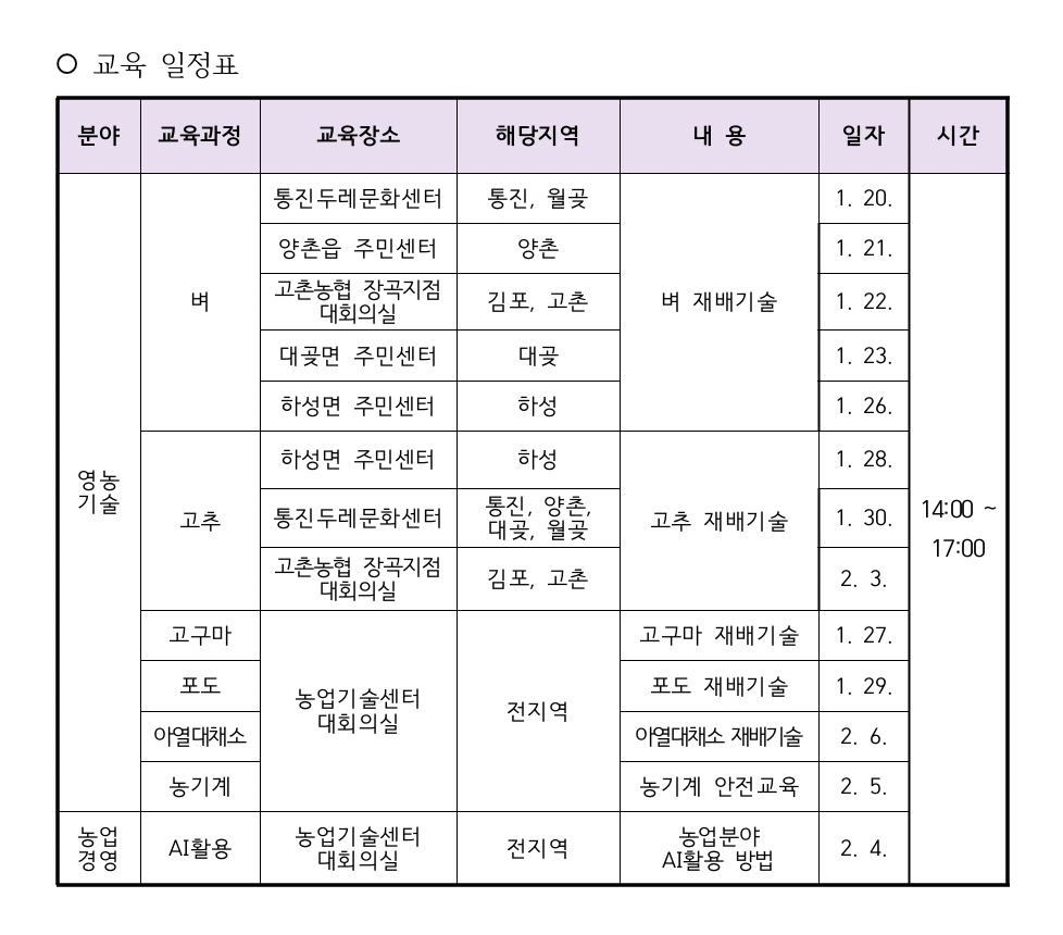 김포시, 2026년 새해농업인실용교육 실시... 1월 20일부터 2월 6일까지 |