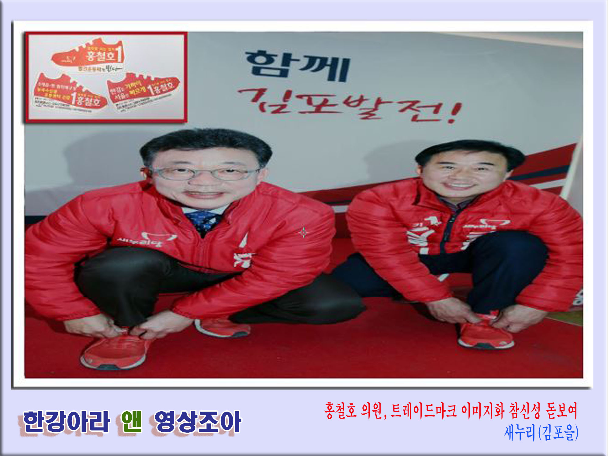 홍철호후보는 "자신의 트레이드마크가 되다시피한 빨간운동화 명함을 배부, 선거운동과정에 신선감을 안겨 주고 있는 것이라"고 말했다. 그는 지난달 말 이번 4.13 총선 예비후보 등록을 하고난 뒤부터 빨간운동화 모양의 명함을 지역 유권자들에게 나눠주고 있는 중이다.