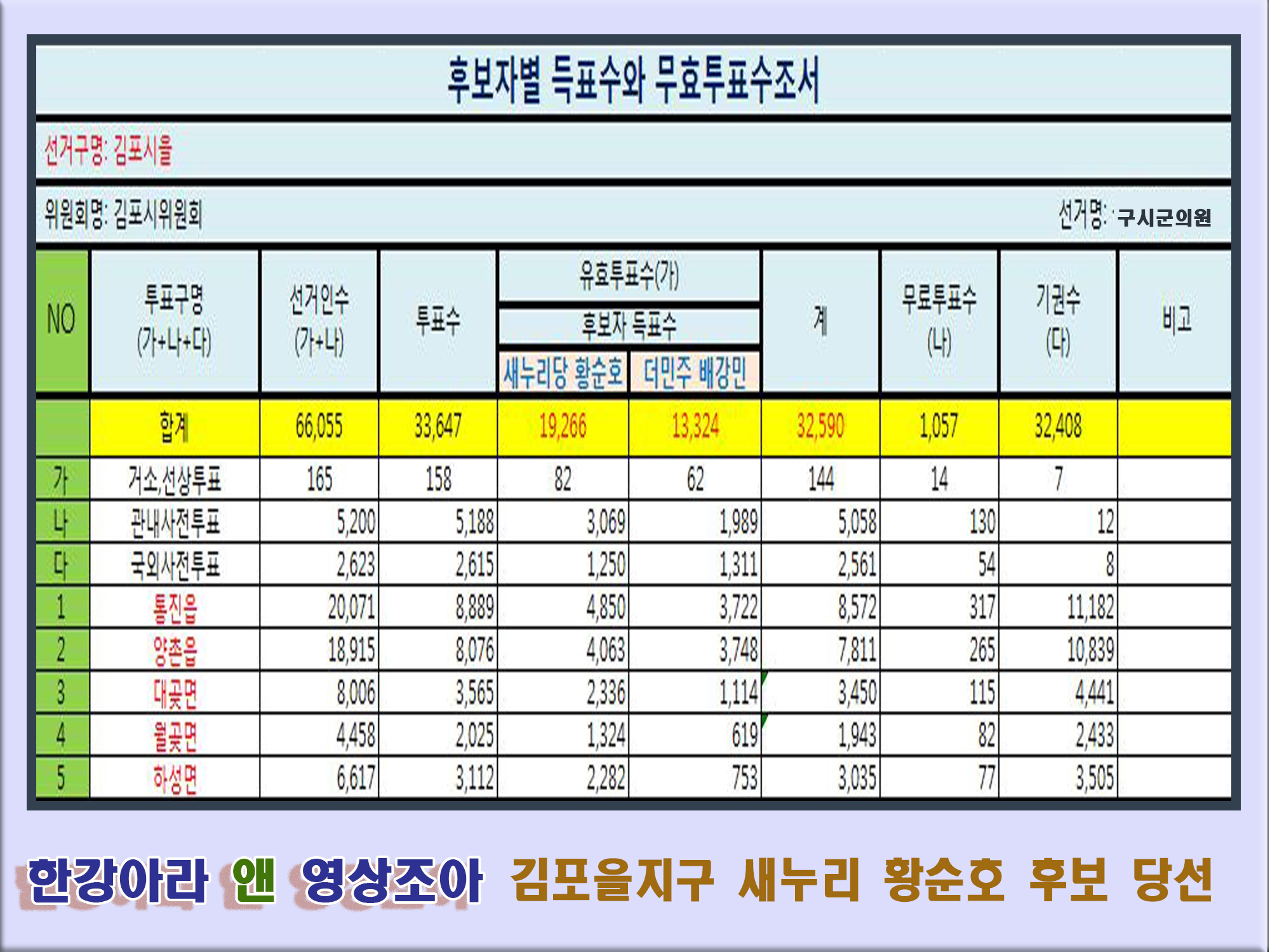 제 20대 총선결과에 따른 김포을 구시군의원 데이터 분석