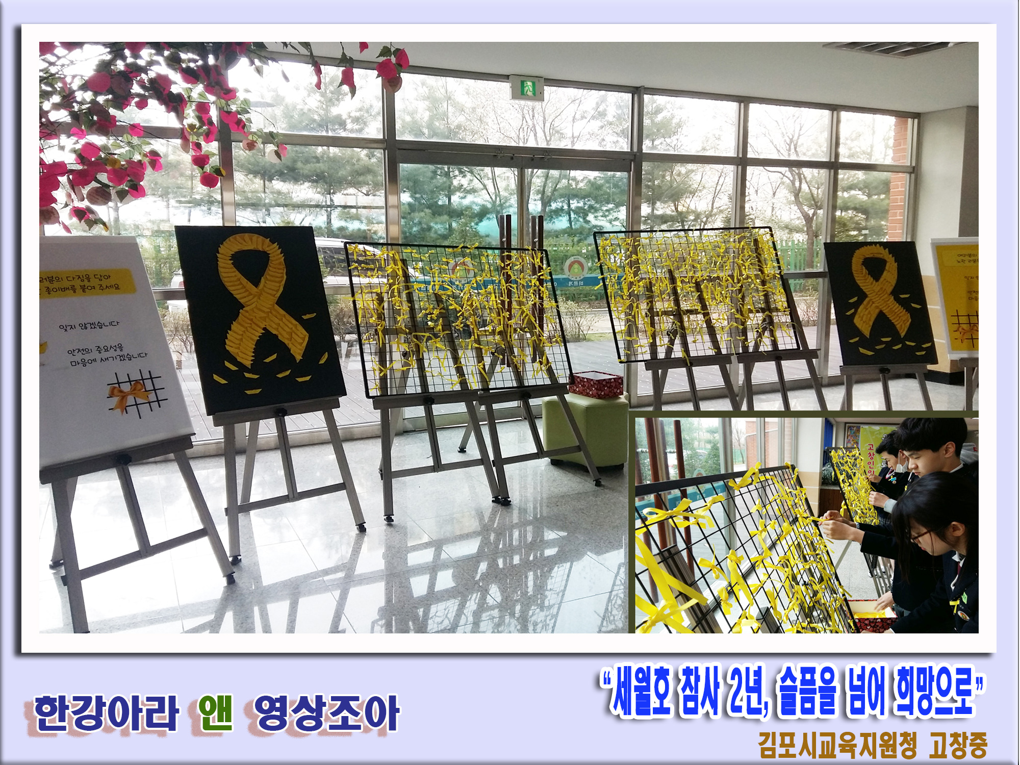 ‘김포 고창중’, 대형 노란 리본 협동 작품 만들기 경기도김포교육청(교육장 박외순)은 세월호 참사 2주기를 맞아서 김포 관내 모든 학교에서 학생자치회 중심의 다양한 추모행사가 진행되었다.