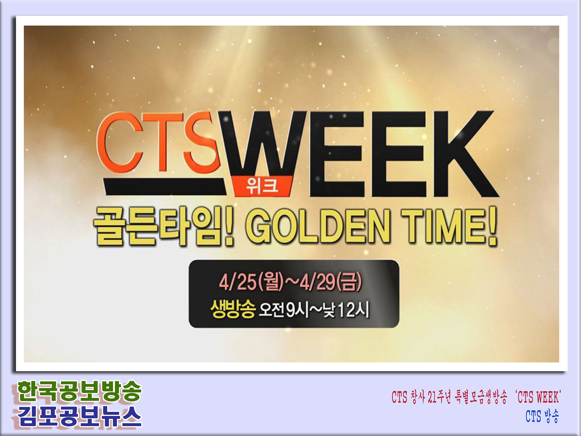 한국교회 대표 영상선교방송 CTS기독교TV(회장 감경철, 이하 ‘CTS’)가 창사 21주년을 맞아 4월 25일(월) 부터 29일(금) 까지를