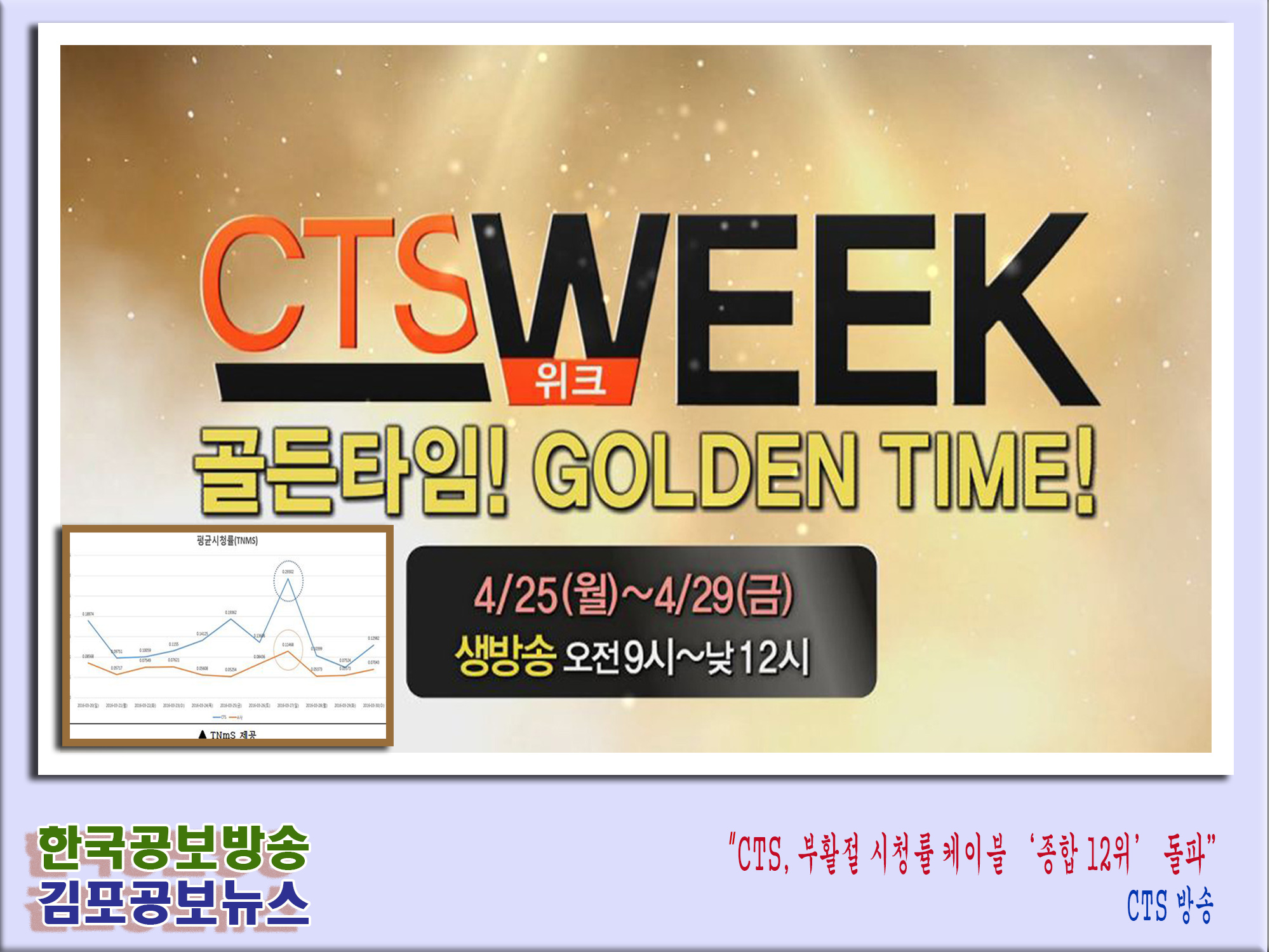 CTS, 부활절 시청률 케이블 ‘종합 12위’ 돌파