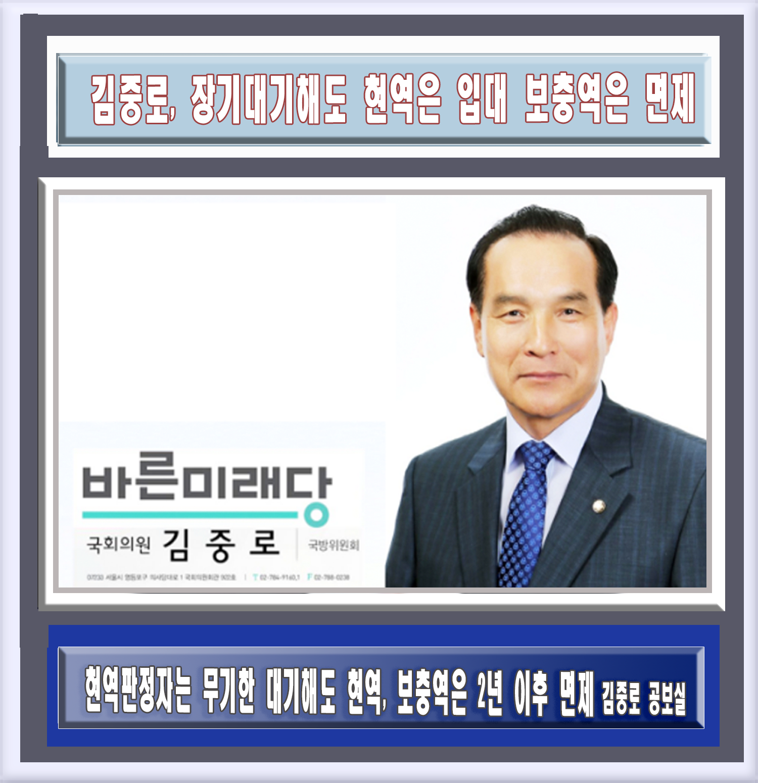 김중로, 장기대기해도 현역은 입대 보충역은 면제 |