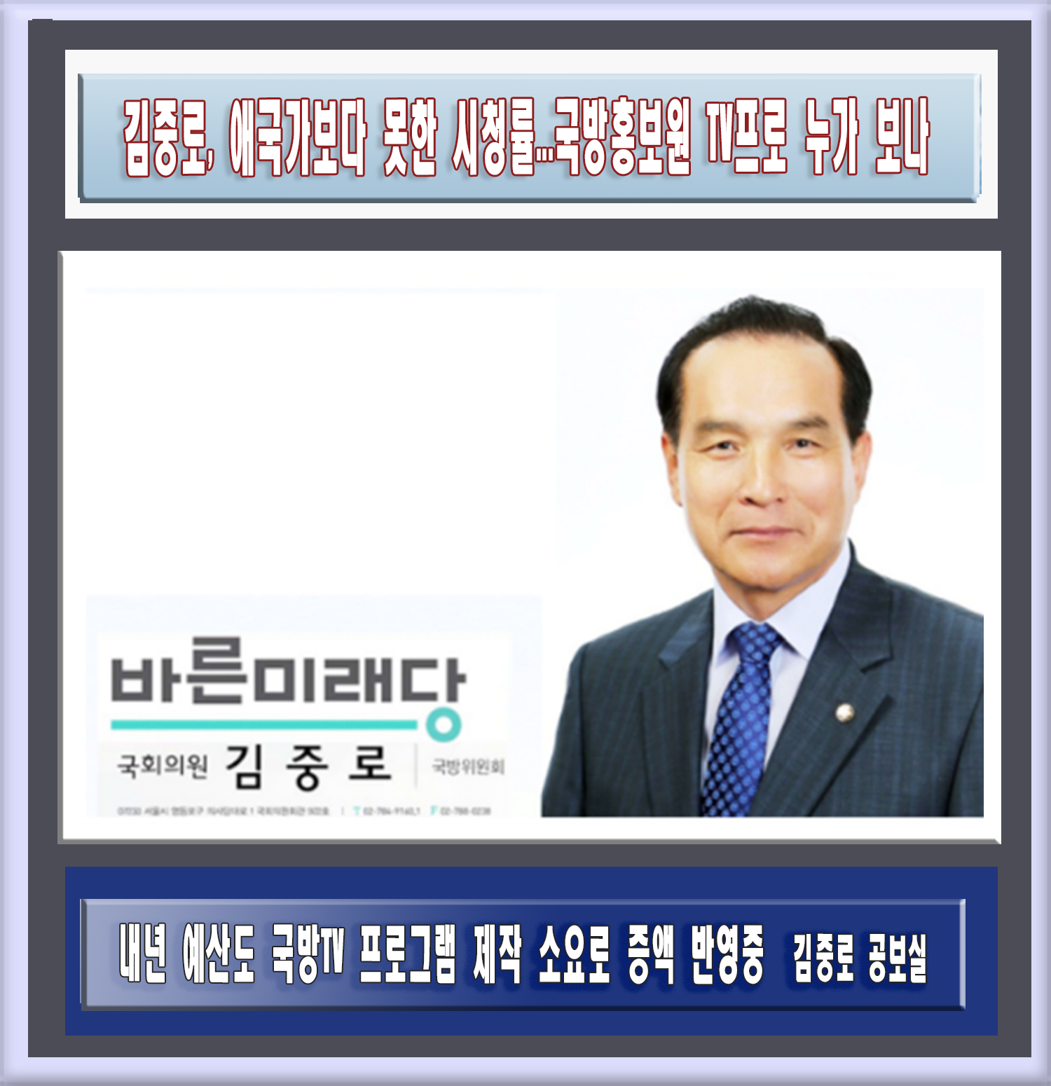 김중로, 애국가보다 못한 시청률...국방홍보원 TV프로 누가 보나 |