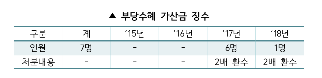 지난해에만 예비군 동대장 6명이 부당수혜 가산금을 징수 받아 2배 환수한 바 있다.