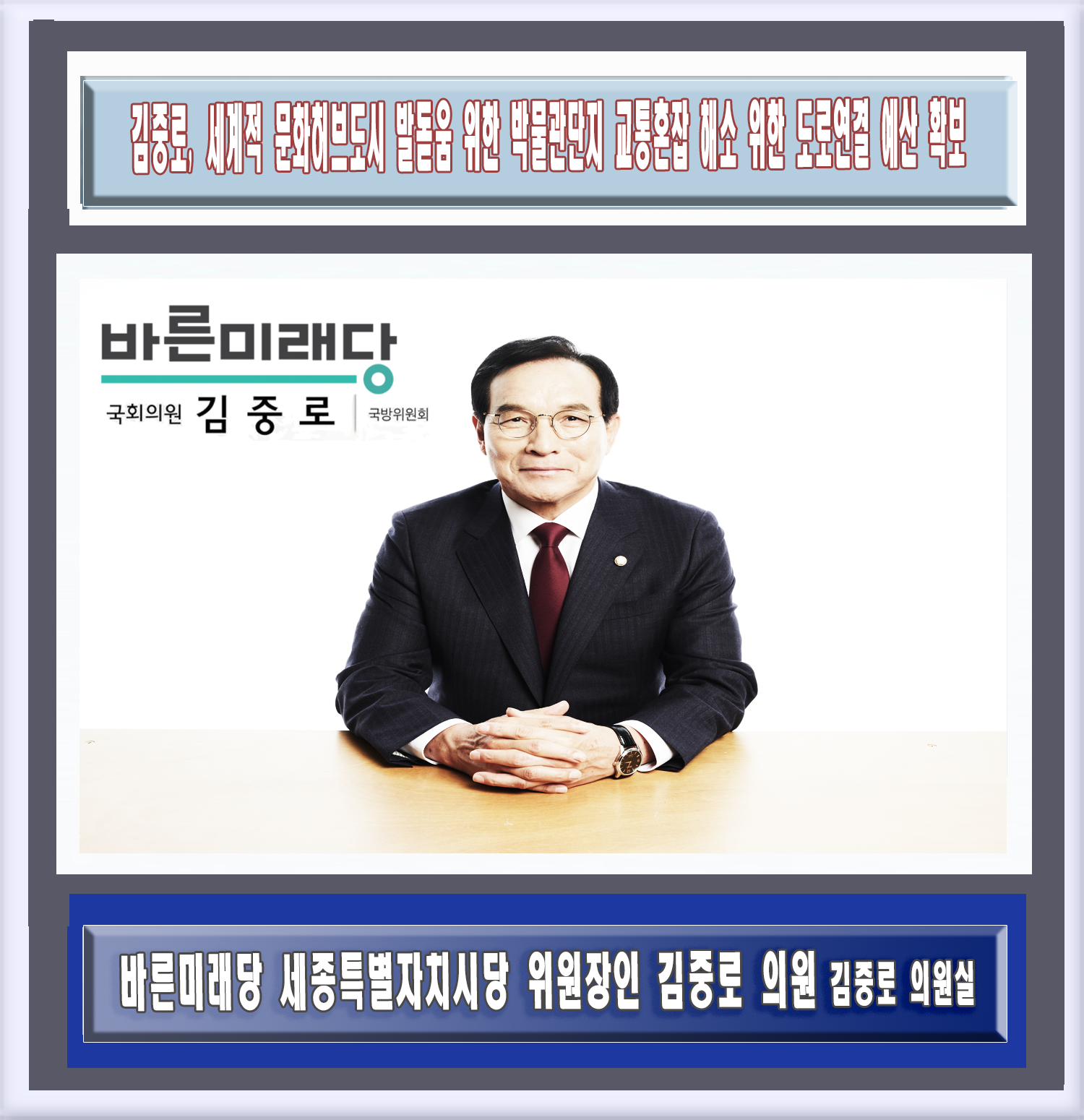 김중로, 세계적 문화허브도시 발돋움 위한 박물관단지 교통혼잡 해소 위한 도로연결 예산 확보 |