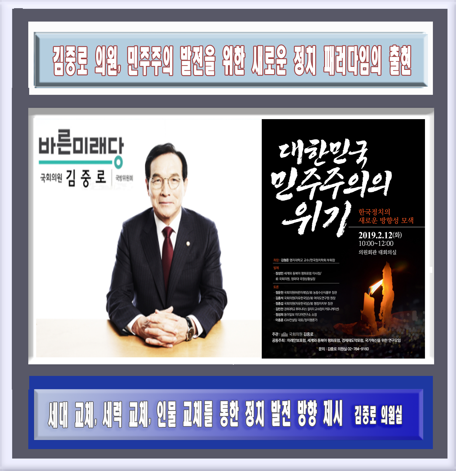 김중로 의원, 민주주의 발전을 위한 새로운 정치 패러다임의 출현 |