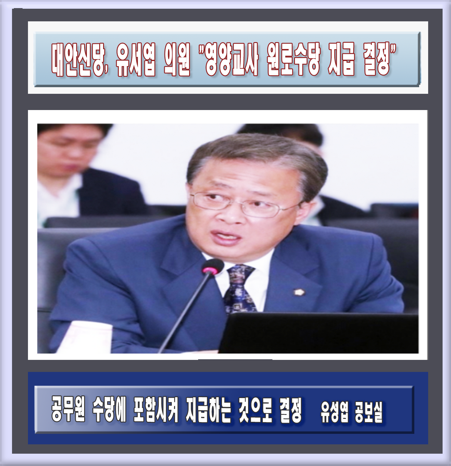 대안신당, 유서엽 의원 "영양교사 원로수당 지급 결정" |