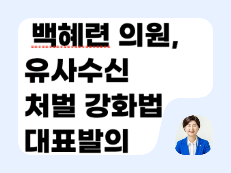 더불어민주당 백혜련 의원(수원을)은 유사수신행위 처벌을 강화하는 ‘특정경제범죄 가중처벌 등에 관한 법률 일부개정법률안’을 대표발의 했다.