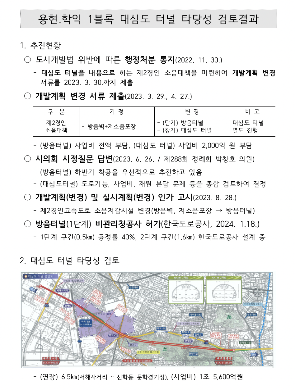 현⋅학익1블록 도시개발사업 대심도 터널 타당성 검토결과 발표 |