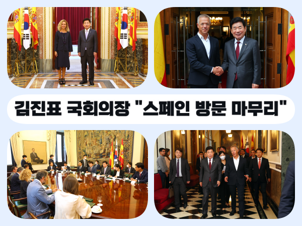 ▲ 전략적 동반자로 격상된 스페인과 건설업 중남미 진출 등 추진 = 김 의장은 12일(이하 현지시간) 스페인 마드리드에서 메리첼 바텟 라마냐 하원의장과 만나 “지난해 6월 양국이‘전략적 동반자 관계’로 격상된 것을 계기로 친환경·디지털, 건설업 제3국 공동진출, 관광 분야의 협력이 활발해지고 있다”며 “양국이 서로의 강점을 기반으로 건설·인프라 분야의 협력 지역을 중동에서 중남미, 아시아 등으로 확대해 나가자”고 제안했다.
