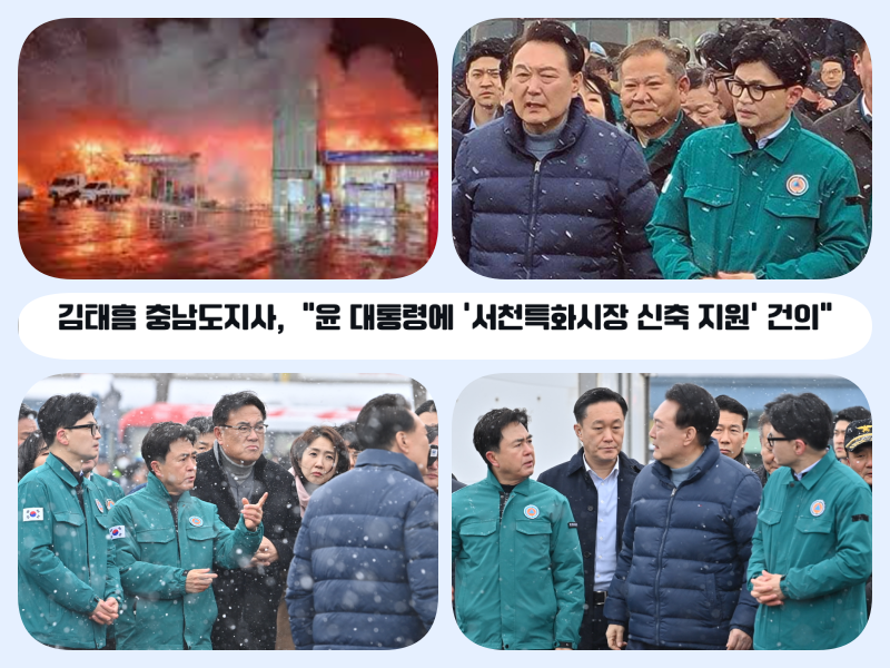 김태흠 충남도지사가 윤석열 대통령과 한동훈 국민의힘 비상대책위원장 등에게 서천특화시장 임시 개설과 신축을 위한 지원을 건의했다.