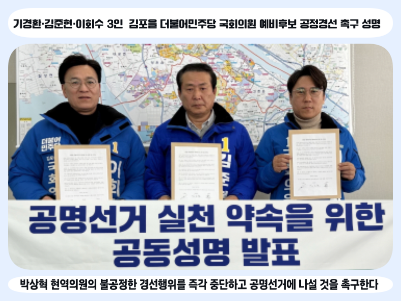 기경환·김준현·이회수 3인 김포을 더불어민주당 국회의원 예비후보 공정경선 촉구 성명 |