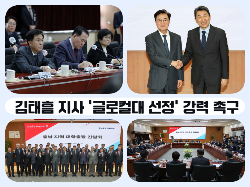 김태흠 충남도지사가 지난해 글로컬대학 탈락에 대한 깊은 유감을 표한 뒤, 지역 내에서 최소 3곳 이상은 선정돼야 한다며 정부의 적극적인 지원을 촉구했다.