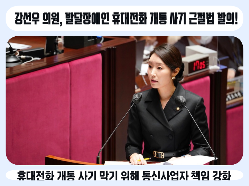 국회 보건복지위원회 소속 강선우 국회의원(더불어민주당, 서울 강서갑)은 발달장애인 등 휴대전화 개통 사기를 근절하기 위한 ‘전기통신사업법’ 개정안을 대표발의했다고 23일 밝혔다.