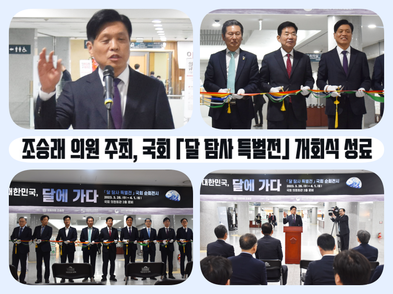 국회 과학기술정보방송통신위원회 소속 조승래 더불어민주당 의원(대전 유성구갑)이 28일(화) 오후 2시에 국회 의원회관 제2로비에서 「달 탐사 특별전 – 대한민국, 달에 가다」전시 개회식을 개최했다.