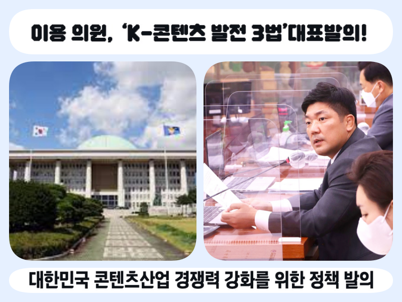 이용 의원, 대한민국 콘텐츠산업 경쟁력 강화를 위한 ‘K-콘텐츠 발전 3법’대표발의! |