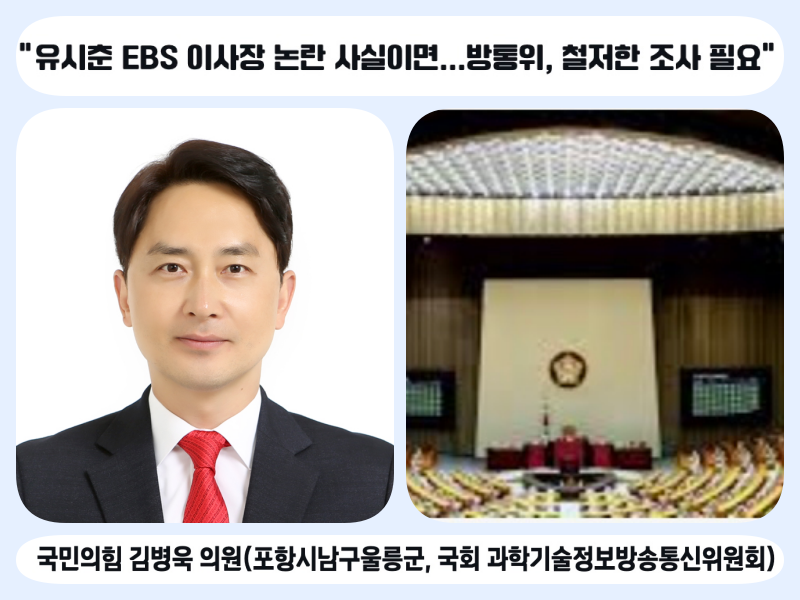 국민의힘 김병욱 의원(포항시남구울릉군, 국회 과학기술정보방송통신위원회)은 10일(화) 열린 방송통신위원회에 대한 국정감사에서 유시춘 EBS 이사장 논란에 대해 철저히 조사하라고 강력히 주장했다.