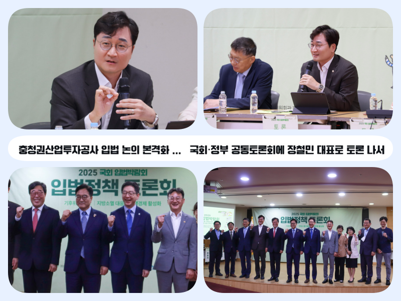 장철민 의원은 끝으로 “충청권에서 시작되는 산업투자공사 모델이 전국으로 확산되어, 각 권역별 산업 특화와 균형발전을 이끄는 새로운 정책수단으로 자리매김해야 한다”며, “앞으로도 국회와 정부, 연구기관, 그리고 지역사회가 함께 협력해 입법을 조속히 완성하겠다”고 밝혔다.