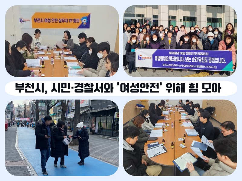 이번 회의에서는 기관별 안전 자원을 연계한 여성 안전 네트워크 활동 방안을 논의했으며 협업 활동으로 부천시청 일대에서 불법촬영 예방 캠페인을 추진했다.