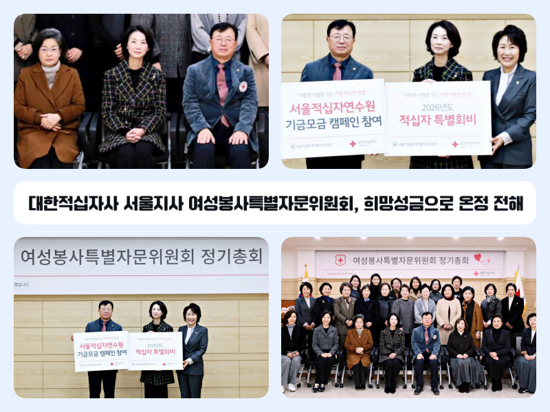 대한적십자사 서울특별시지사(회장 권영규)는 여성봉사특별자문위원회가 ‘2026년도 적십자 특별회비’와 ‘적십자연수원 리모델링 후원금’을 기탁했다고 밝혔다.