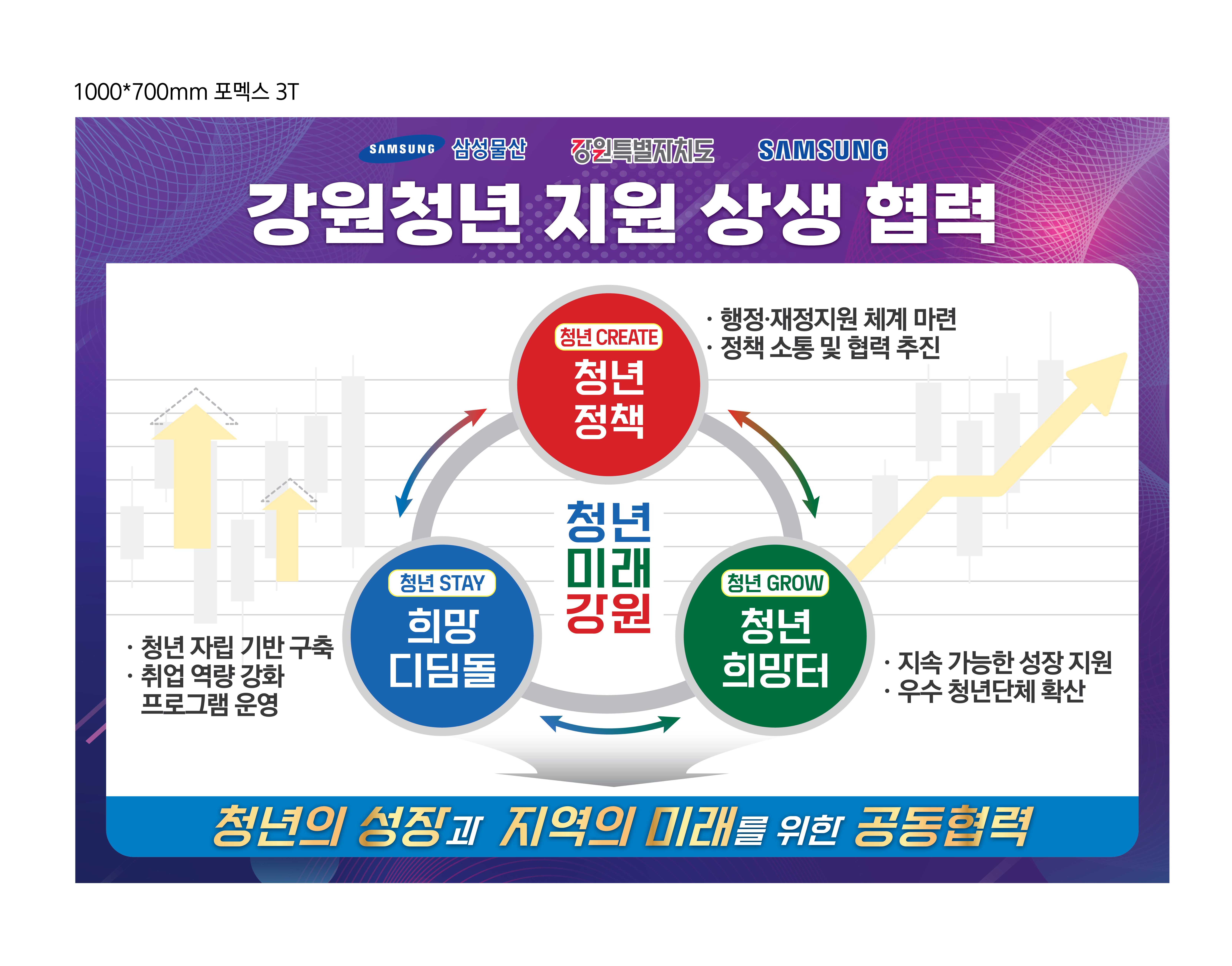 - 셋째, 청년단체 육성 및 지역 활력 제고(청년희망터)는 지역 문제를 해결하는 도내 우수 비영리 청년단체를 발굴하여, 삼성물산의 컨설팅과 강원도의 정책적 지원을 결합한 성장을 지원한다.