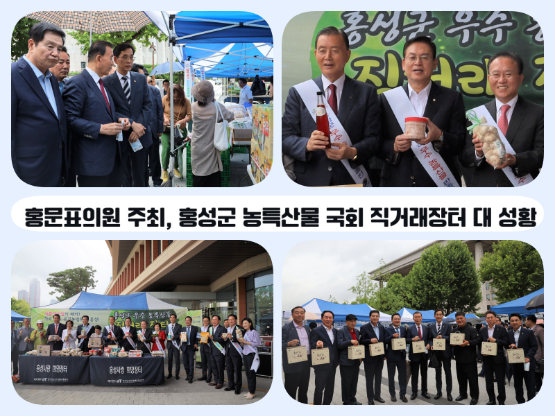 홍문표 국회의원(국민의힘, 홍성·예산)과 홍성군이 공동주최하고 홍성군 6차산업협동조합이 주관한 ‘홍성군 우수 농특산물 직거래장터’ 지난 11일 국회 소통관에서 열린가운데 개장식에 200여명의 인사가 참여하여 대 성황을 이뤘다.