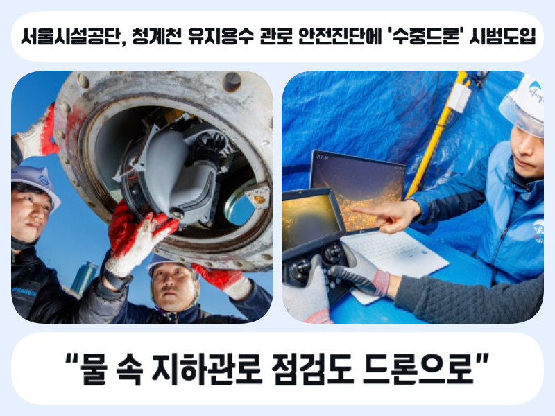 “물 속 지하관로 점검도 드론으로” 서울시설공단, 청계천 유지용수 관로 안전진단에 '수중드론' 시범도입 |