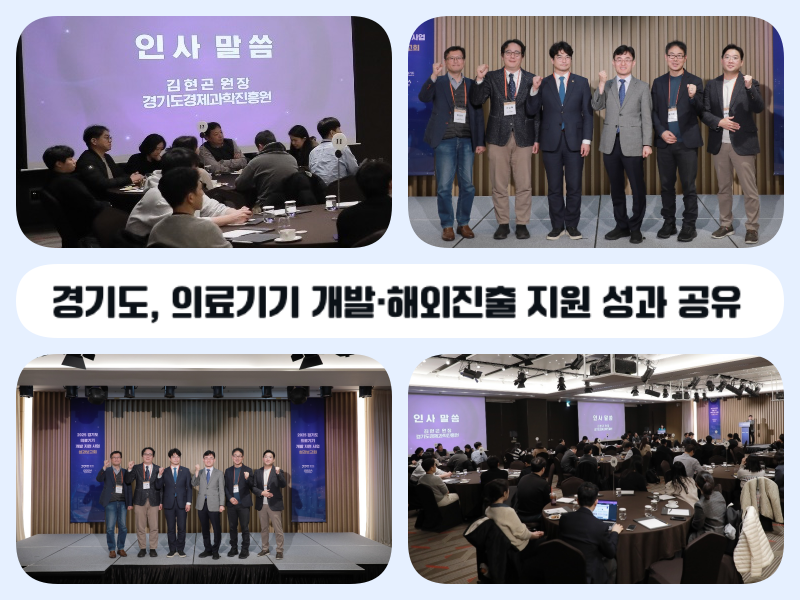 경기도와 경기도경제과학진흥원은 27일 코트야드 바이 메리어트 수원에서 도내 의료기관 및 연구기관, 참여기업 등 100여 명의 의료기기 산업 관계자가 참석한 가운데 ‘2025년 경기도 의료기기 개발 지원 사업 성과보고회’를 개최했다.