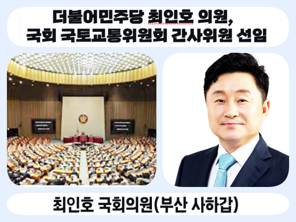 최인호 국회의원(부산 사하갑)이 국회 국토교통위원회의 더불어민주당 간사로 선임됐다.