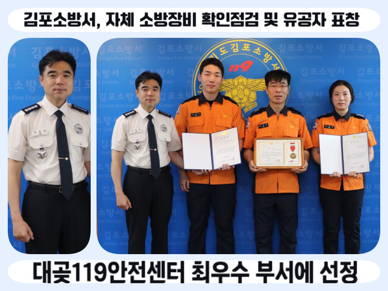 자체 소방장비점검 결과 최우수 부서는 대곶119안전센터가 선정됐으며, 박민정 소방장, 김진석 소방교, 김영길 소방사가 최우수 부서 선정에 기여한 공을 인정받아 개인별 표창을 수여받았다.