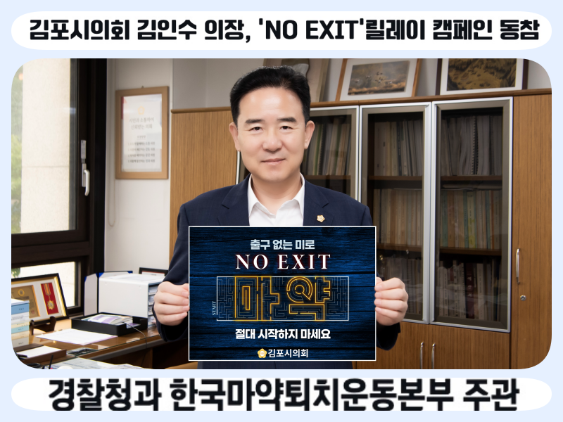 김포시의회 김인수 의장은 26일 마약 근절을 위한 ‘NO EXIT’릴레이 캠페인에 참여했다.