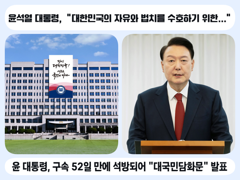 윤 대통령, 구속 52일 만에 석방되어 "대국민담화문" 발표 |
