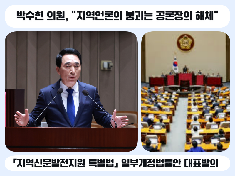 끝으로 박 의원은 “지역의 고유한 목소리가 존중받을 때, 대한민국 전체도 더 건강하고 지속 가능하게 발전할 수 있다”며, “이번 개정안이 침체된 지역언론 생태계를 다시 세우는 디딤돌이 되길 바란다”고 말했다.