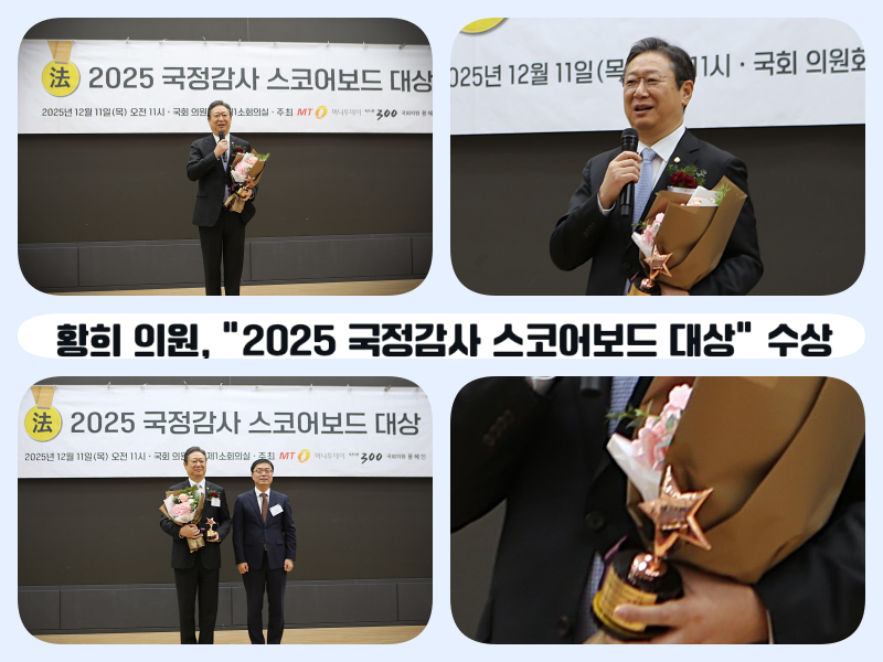황희 의원, “2025 국정감사 스코어보드 대상” 수상 |