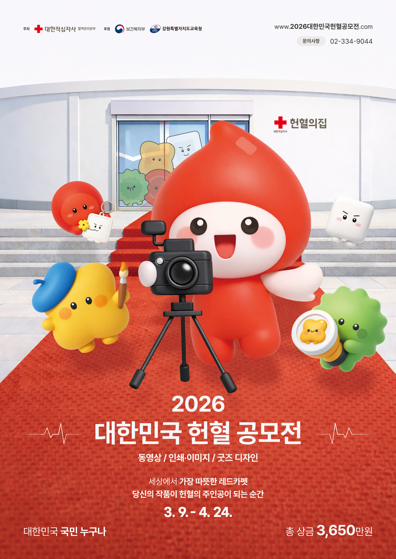 대한적십자사 혈액관리본부(본부장 권소영)는 3월 9일(월)부터 4월 24일(금)까지「2026년도 대한민국 헌혈공모전」을 개최한다.