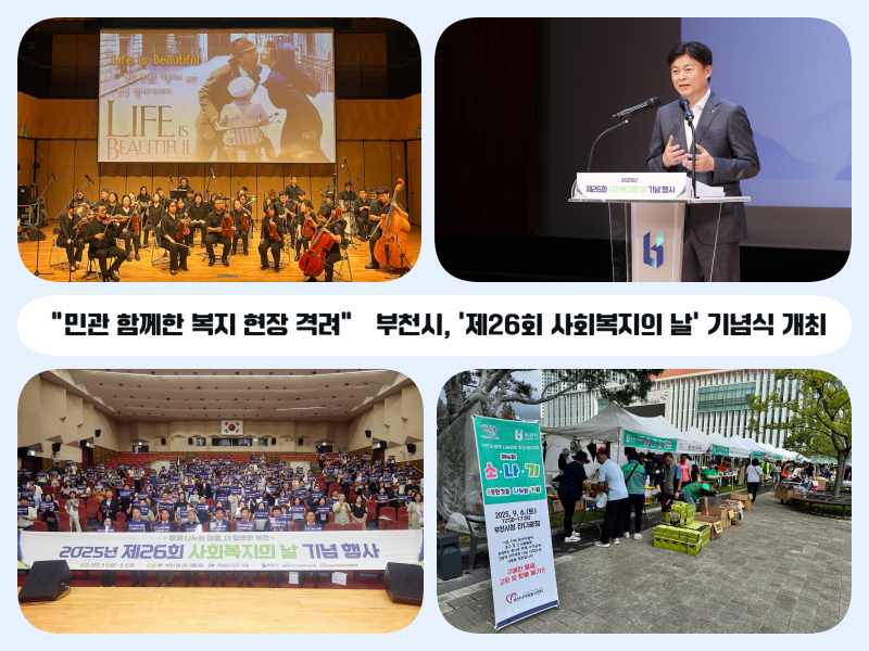 부천시는 지난 5일 시청 어울마당에서 ‘제26회 사회복지의 날 기념식’을 열었다. 이번 행사는 부천시사회복지협의회와 부천시지역사회보장협의체가 공동 주관해 민관 협력의 의미를 더했다.