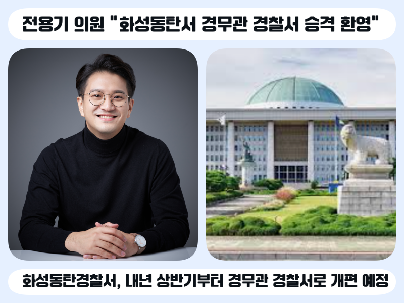 - 화성동탄경찰서, 내년 상반기부터 경무관 경찰서로 개편 예정 - 전용기 의원 “동탄 치안 역량 한 단계 도약…모두의 노력으로 만든 결실” |