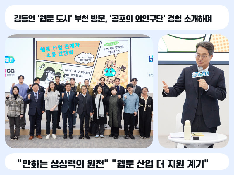 김동연 ‘웹툰 도시’ 부천 방문, ‘공포의 외인구단’ 경험 소개하며 “만화는 상상력의 원천” “웹툰 산업 더 지원 계기” |