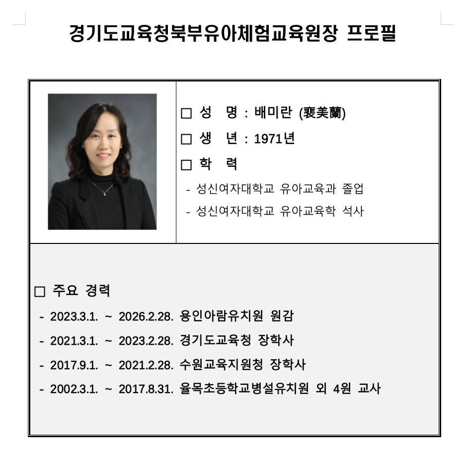 특히 ‘경기미래교육의 완성’이라는 시대적 소명을 수행하기 위해 현장 지원 중심의 조직 효율화를 지속적으로 추진하고자 힘썼다. 이를 통해 학교 현장에서 체감할 정책을 충실히 구현하고, 교사가 교육 본연의 역할에 집중하며, 학생 맞춤형 교육을 적극 지원할 수 있는 인사가 되도록 노력했다.