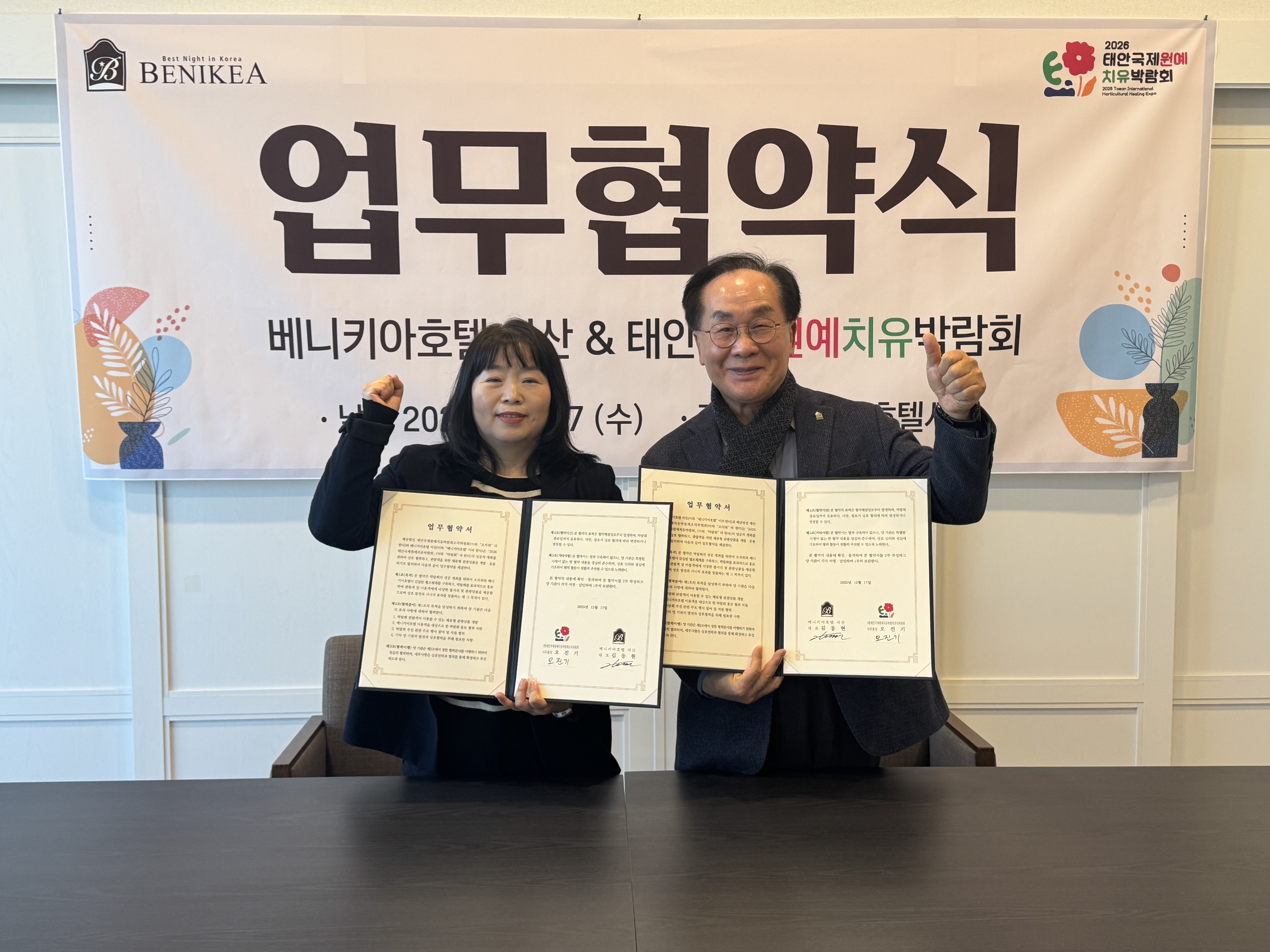 또한 베니키아호텔 서산은 박람회 홍보에 적극 협력하고, 조직위원회는 박람회 공식 홍보 채널을 활용해 해당 패키지 상품과 할인 혜택을 안내하는 등 상호 협력을 강화할 예정이다.
