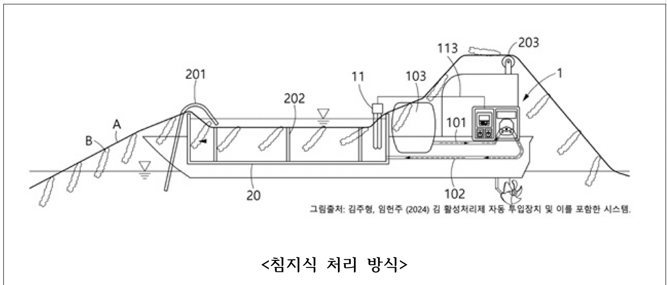 침지식 처리는 김 양식 현장에서 보편적으로 운영하고 있는 선박을 이용, 초기 설비 없이 기존 장비와 작업 체계를 활용할 수 있다는 점에서 현장 적용성이 매우 높다.