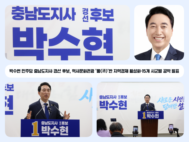 박수현 민주당 충남도지사 경선 후보, 역사문화관광 ‘통(通)’한 지역경제 활성화·15개 시군별 공약 발표 |