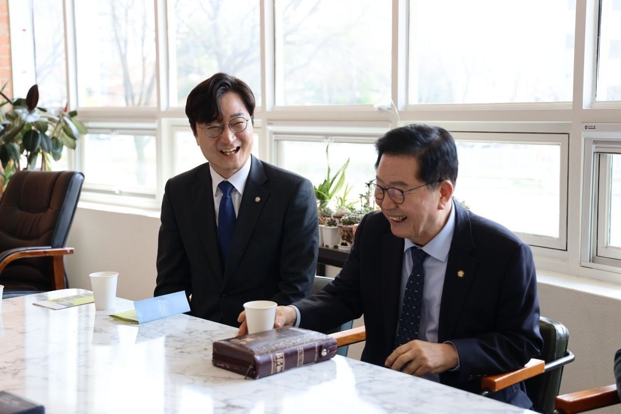 이날 두 의원이 함께 찾은 곳은 장종태 의원의 지역구(서구갑) 내 출석 교회다. 장종태 의원은 이날 예배 전후로 교인들과 지역 주민들에게 장철민 의원을 직접 동행하며 소개했다.