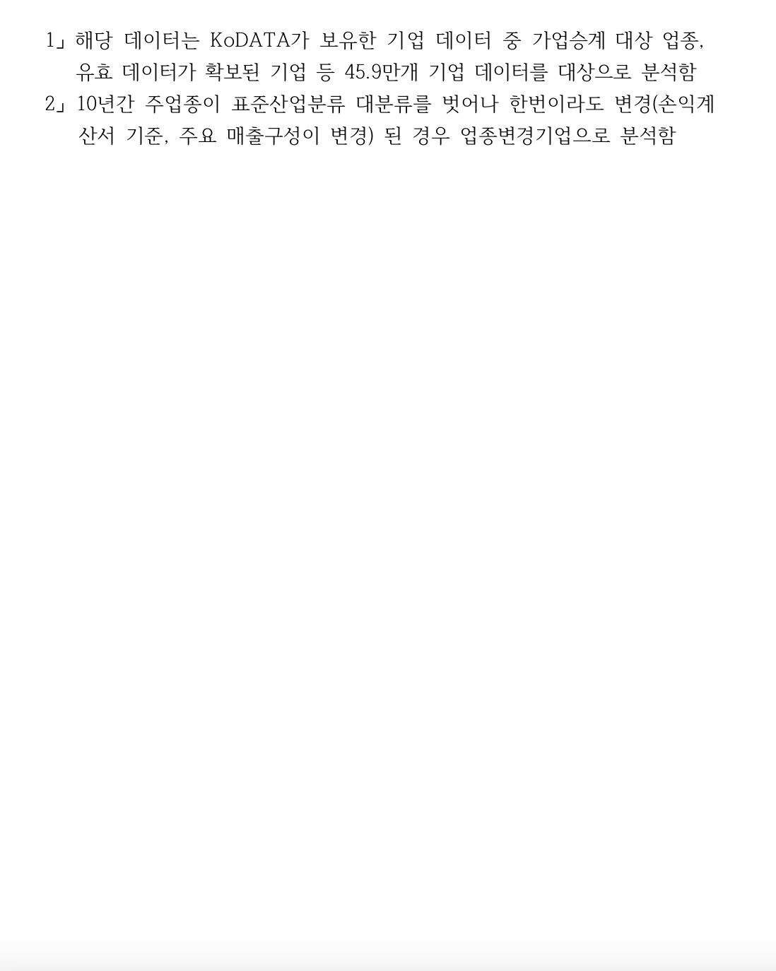 중소기업중앙회에 따르면 중소기업의 33.3%가 복수의 업종을 영위하고 있고, 업력이 길수록 복수업종 영위비율이 높아 업력 60년 이상 기업의 50.8%가 복수업종을 영위 중이며, 절반 가량(47.8%)은 업종을 변경한 상태다.