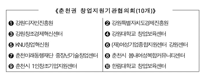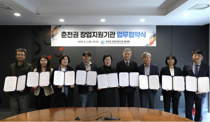 강원디자인진흥원(원장 최인숙)은 5월 2일(금) 강원디자인진흥원 대회의실에서 춘천권 창업지원기관 9개 기관(춘천권 창업지원기관 협의회)과 업무협약을 체결했다. 이번 협약을 통해 춘천권 내 창업지원을 담당하는 9개 기관과 함께 창업기업의 성장과 창업지원사업의 활성화를 위한 협력 체계를 구축하고, 폭 넓은 창업지원과 협력을 강화하기로 했다.