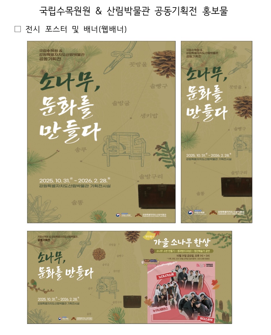 강원특별자치도산림과학연구원(산림박물관)은 10월 31일부터 2026년 2월 28일까지 국립수목원과 공동으로 기획한 전시회 「소나무, 문화를 만들다」를 개최한다.