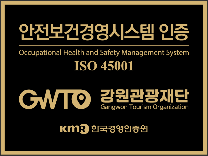 재단법인 강원관광재단(대표이사 최성현, 이하‘재단’)이 국제표준화기구(ISO)가 제정한 안전보건경영시스템(ISO 45001) 인증을 한국경영인증원(KMR)으로부터 지난 2월 20일 (금), 획득했다고 밝혔다.