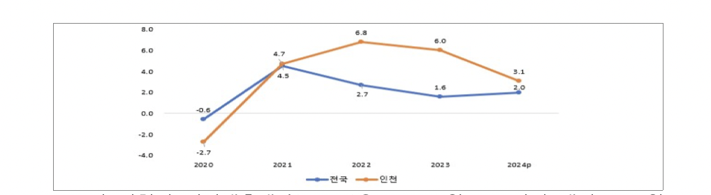 인천시는 최근 3년간(2022~2024년) 연속적인 고성장을 이어가며, 3년 평균 경제성장률 5.3%를 기록해 전국 1위에 올랐다. 이는 전국 평균 성장률 2.1%를 크게 상회하는 수치로, 인천 경제의 성장 잠재력과 경쟁력을 보여주는 결과로 평가된다.